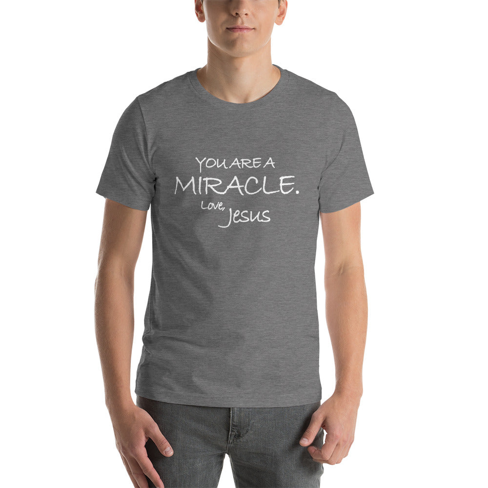 Short-Sleeve Unisex T-Shirt---You Are A Miracle. Love, Jesus---Click for more shirt colors